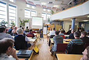 Mit Vertretern des Bundesamtes für Wirtschaft und Ausfuhrkontrolle (BAFA) konnten die Handwerker über die Nachweispflicht für den hydraulischen Abgleich diskutieren. In einem weiteren Workshop bekamen die Installateure Tipps für die Arbeit mit den Software-Programmen „Optimus“ und „ZVPLAN“. Dr. Hans-Michael Dimanski, Fachanwalt für privates Baurecht und Geschäftsführer der SHK-Fachverbände in Thüringen und Sachsen-Anhalt, gab den Handwerkern Ratschläge, wie sie Haftungsrisiken bei einem hydraulischen Abgleich minimieren können. Zum Abschluss des Tages wurde es noch einmal praktisch: Bernd Scheithauer von Danfoss ging in seinem Vortrag mit den Besuchern des Handwerker-Tages auf Fehlersuche und zeigte typische Probleme und Lösungen beim Durchführen des hydraulischen Abgleichs.